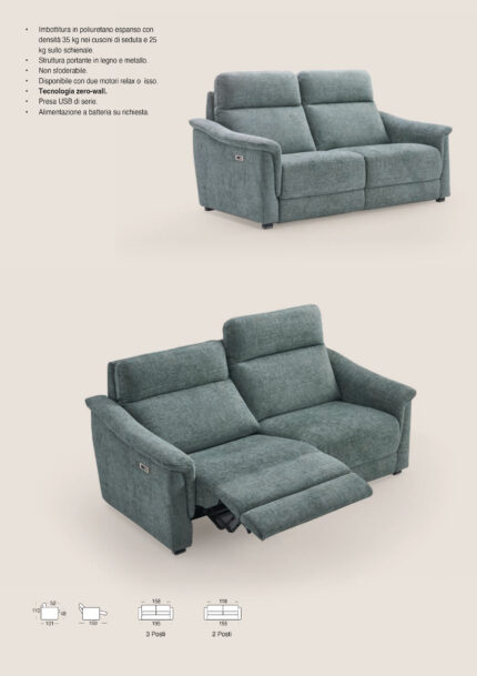 Divano Relax Mod. DORIAN • Imbottitura in poliuretano espanso con densità 35 kg nei cuscini di seduta e 25 kg