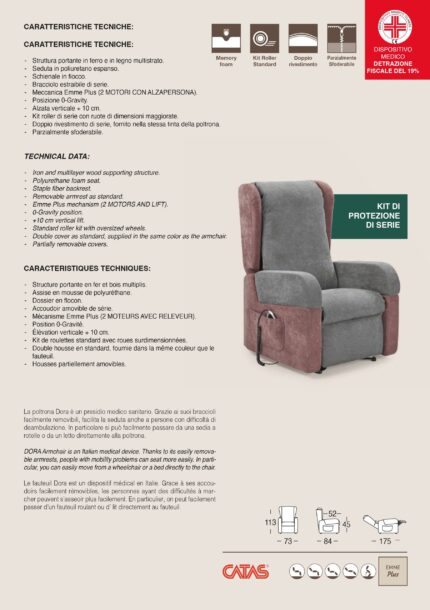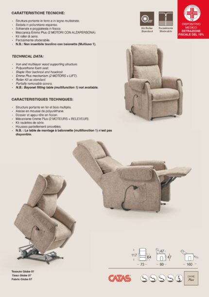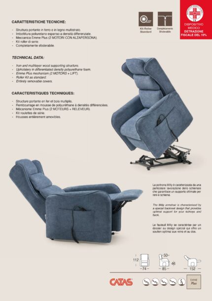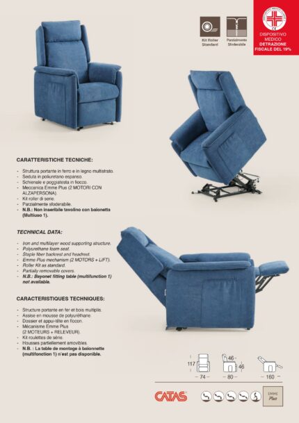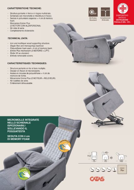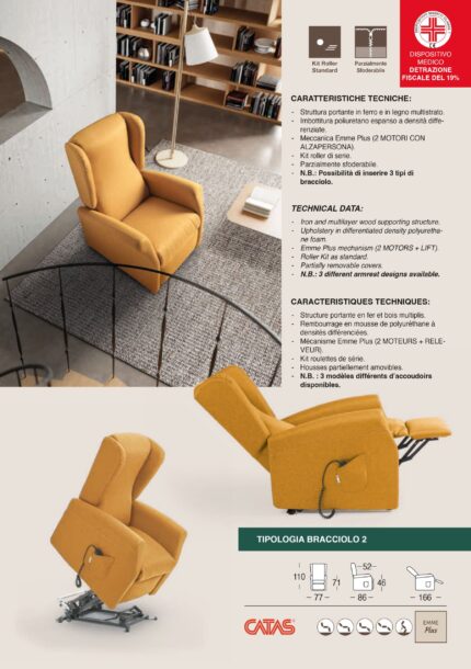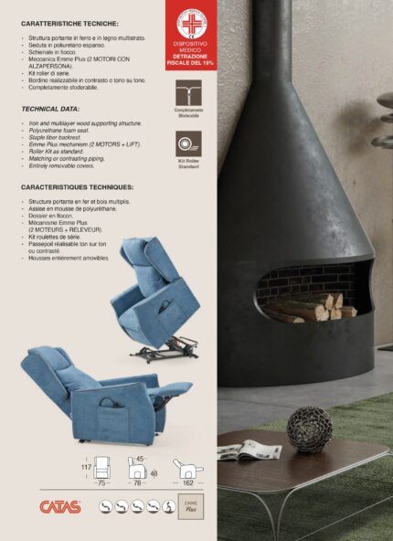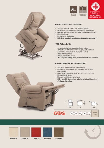 Poltrona Mod. NOEMI PLUS Relax – Lift Sanitaria Struttura portante in ferro e in legno multistrato Seduta in memory foam