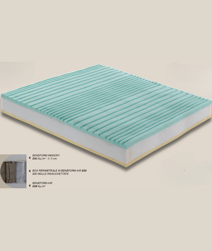 MateriaIi di altissima qualità e lavorazione accurata sono gli ingredienti per la realizzazione di questo materasso. Utilizziamo molle bi-coniche in acciaio di diverso tipo a seconda delle zone del materasso per garantire una aIta indeformabilità ed un sostegno deciso che dura neI tempo. La struttura è costituita da un ring esterno in poliuretano espanso rigido che garantisce un maggior sostegno nelle zone laterali e un miglior funzionamento delle molle nella parte centrale.