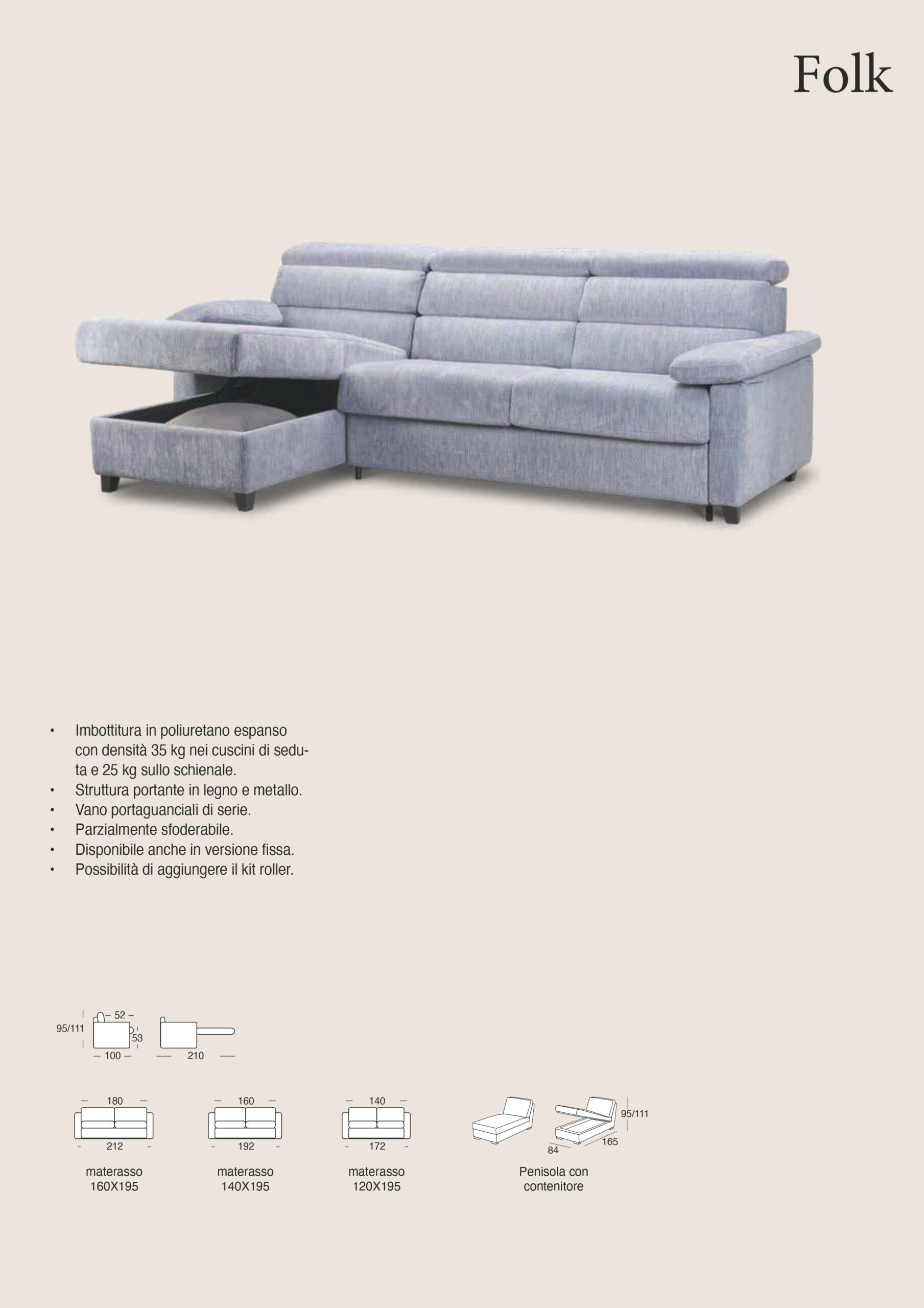 Divano Letto Mod. STORK Imbottitura in poliuretano espanso con densità 35 kg nei cuscini di seduta e 25 Kg sullo