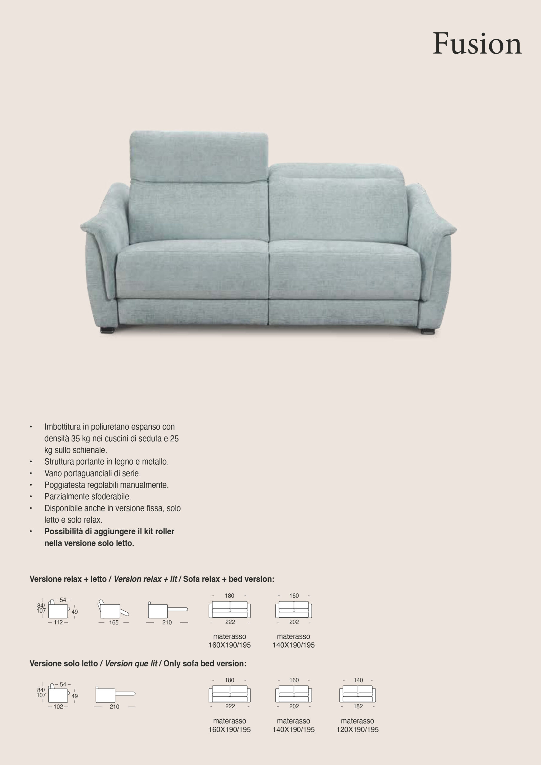 - Disponibile anche la versione fissa, solo letto e solo Relax