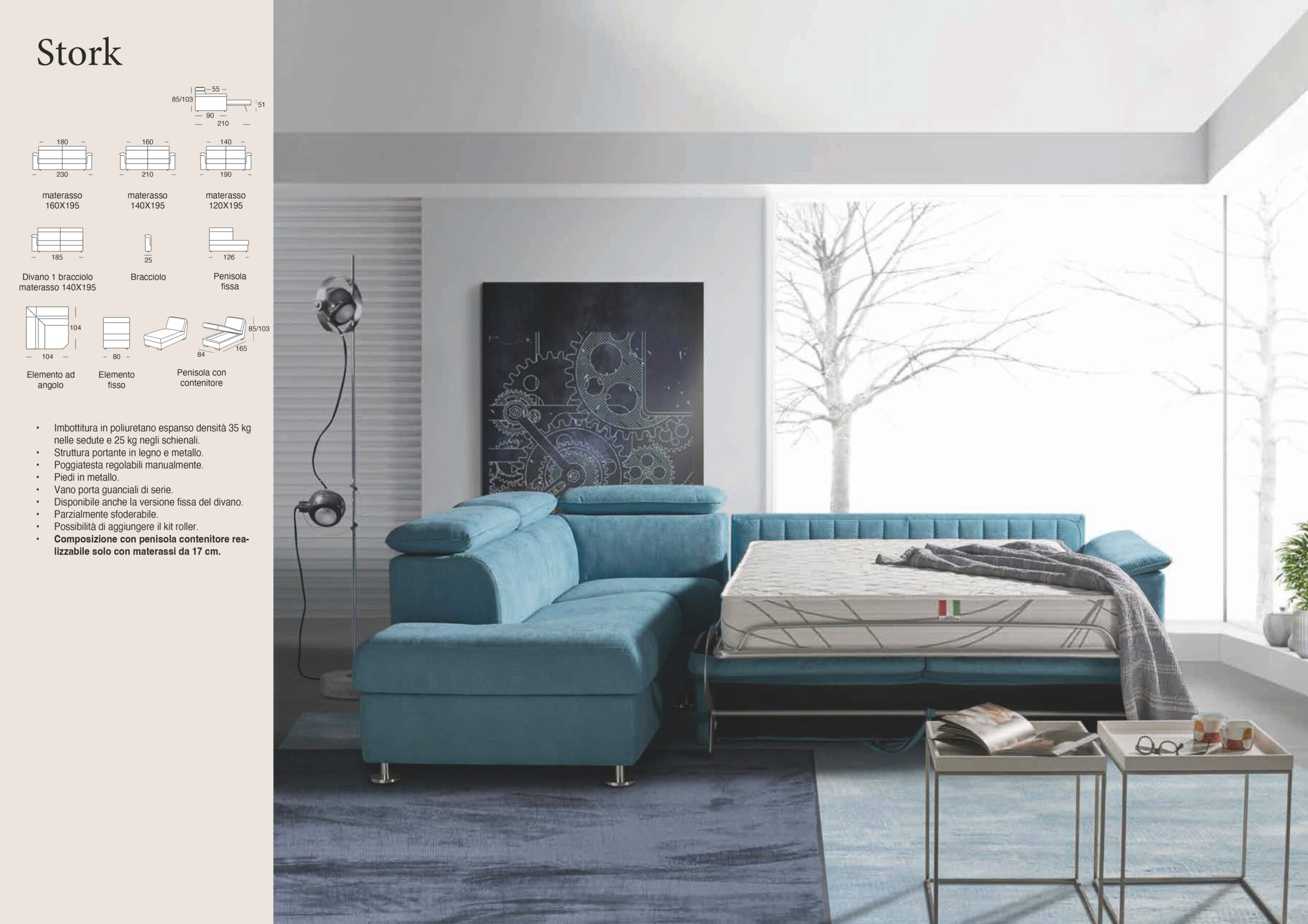 Divano Letto Mod. TORY Imbottitura in poliuretano espanso con densità 35 kg nei cuscini di seduta e 25 kg sullo