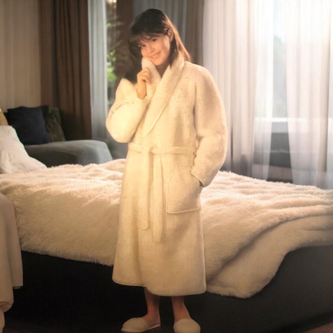 la vestaglia è realizzato in pura pura lana Merino 100% altamente resistente e duratura.